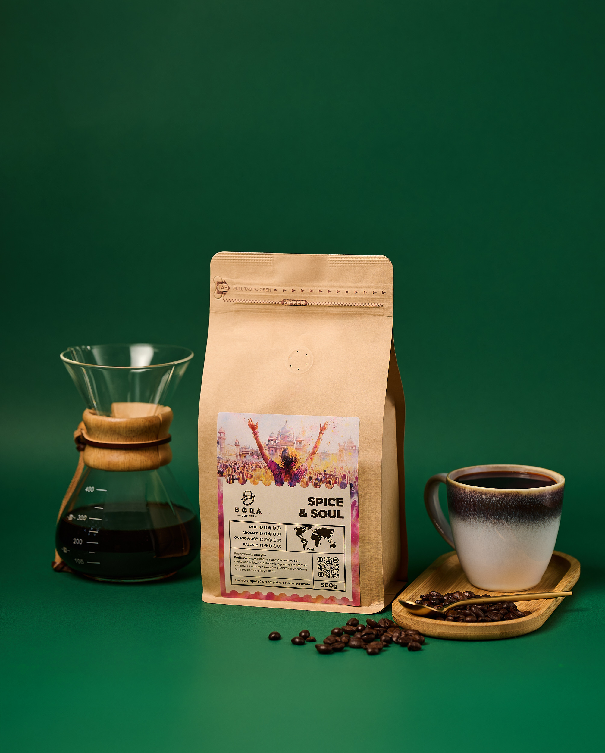Spice & Soul mieszanka o pełnym body, intensywnej głębi smaku i niskiej kwasowości. Dzięki dominacji robusty Brasil Conilon kawa zyskuje wyrazistą goryczkę, nuty kakaowe oraz delikatne akcenty przypraw korzennych. Kawy Arabica Brasil Cerrado i Santos równoważą profil, dodając łagodnej słodyczy, nut orzechowych oraz subtelnych akcentów mlecznej czekolady.